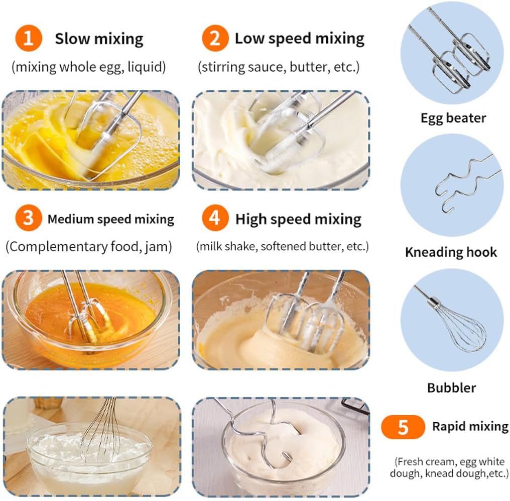 Batedeira de mão de aço inoxidável SOKANY 800W, 5 velocidades com botão de saída, batedor de mão com 2 ganchos de massa e 2 batedores (SK-02001 3 em 1 800W)