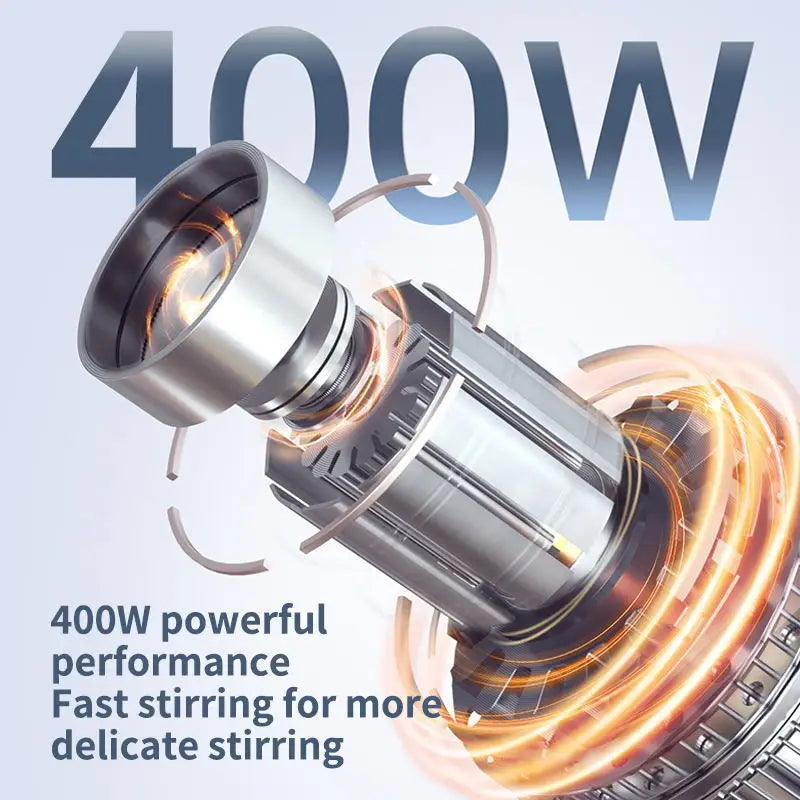 Este processador de alimentos multifuncional está equipado com um motor de alta potência de 400 W, proporcionando desempenho eficiente para diversas tarefas de preparação de alimentos. O design ergonômico do punho garante um manuseio confortável durante o uso e foi projetado para uma limpeza fácil e rápida. A lâmina de aço inoxidável corta alimentos com rapidez e precisão, tornando-a uma ferramenta confiável na cozinha para picar, misturar e muito mais.