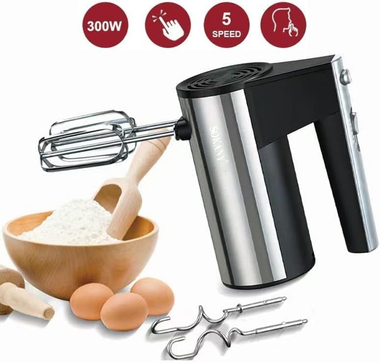 Batedeira Elétrica e Batedora de Ovos Sokany, 300 Watts, Preto e Prata - SK-6638