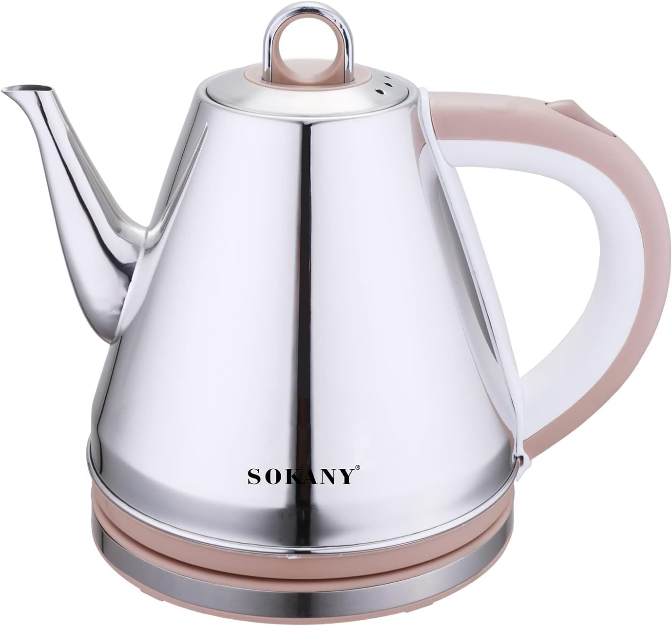 SOKANY 1100W Chaleira Elétrica Chaleira de Água Quente, Caldeira de Água Quente 1.5L, Vazamento Sem Fio, Fabricante de Chá Portátil Elemento de Aquecimento Rápido. (Aço inoxidável, SK-SH-1083)