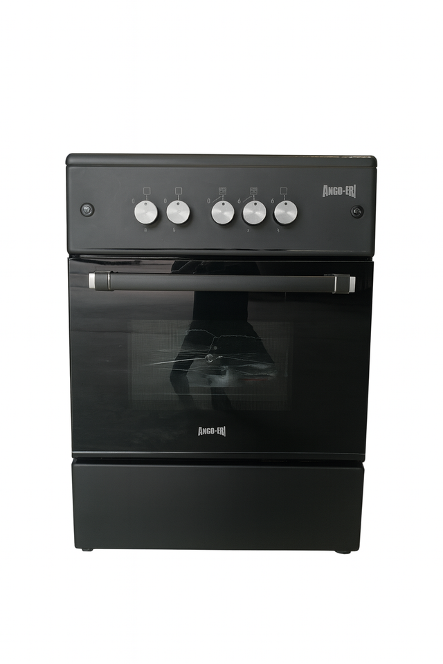 Fogão a Gas, 4 bocas, 60x60cm com 2 Fornos (cima+Baixo), Cor Preto, com esqueiro, com espada para grelhar giratoria