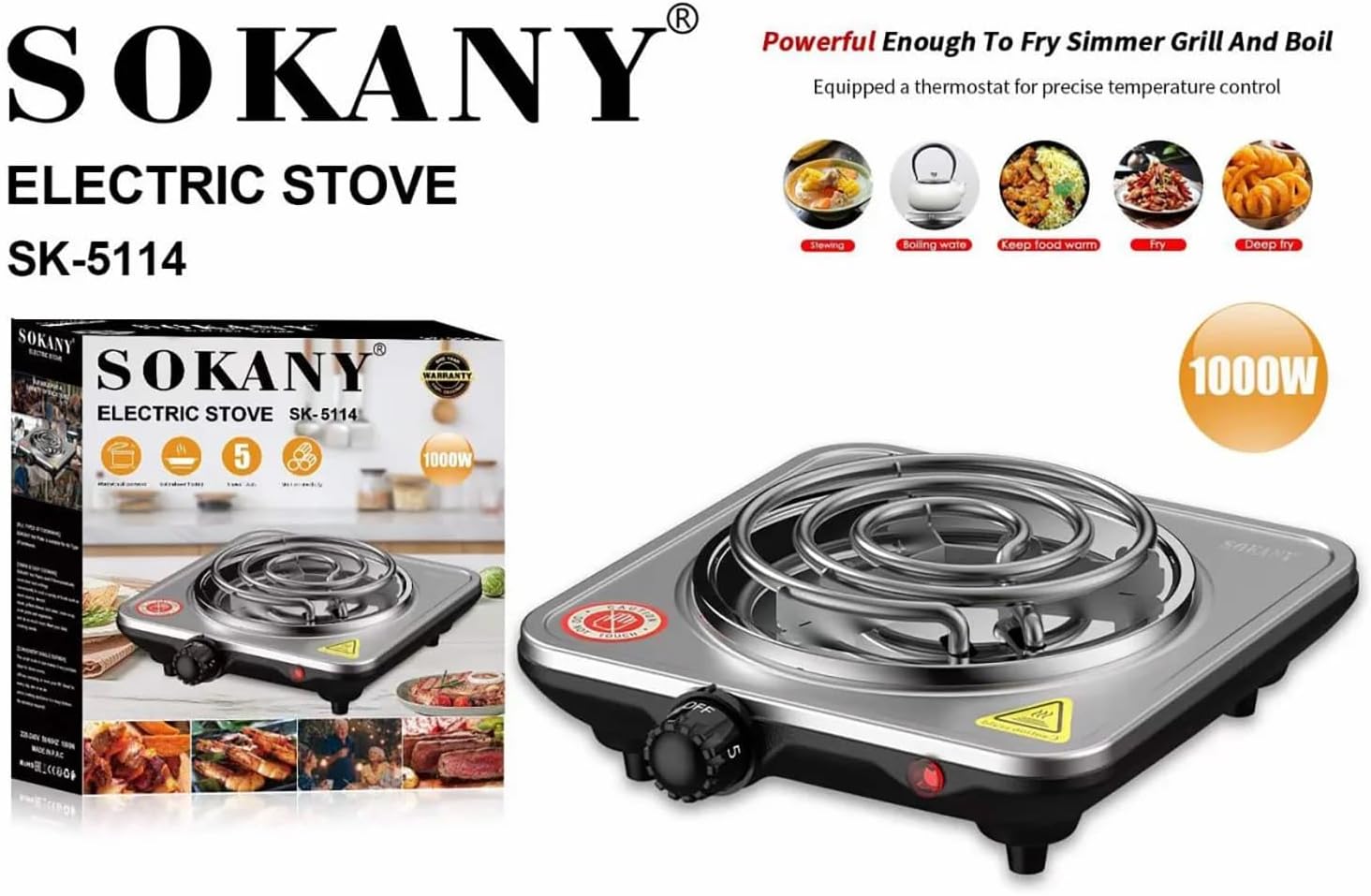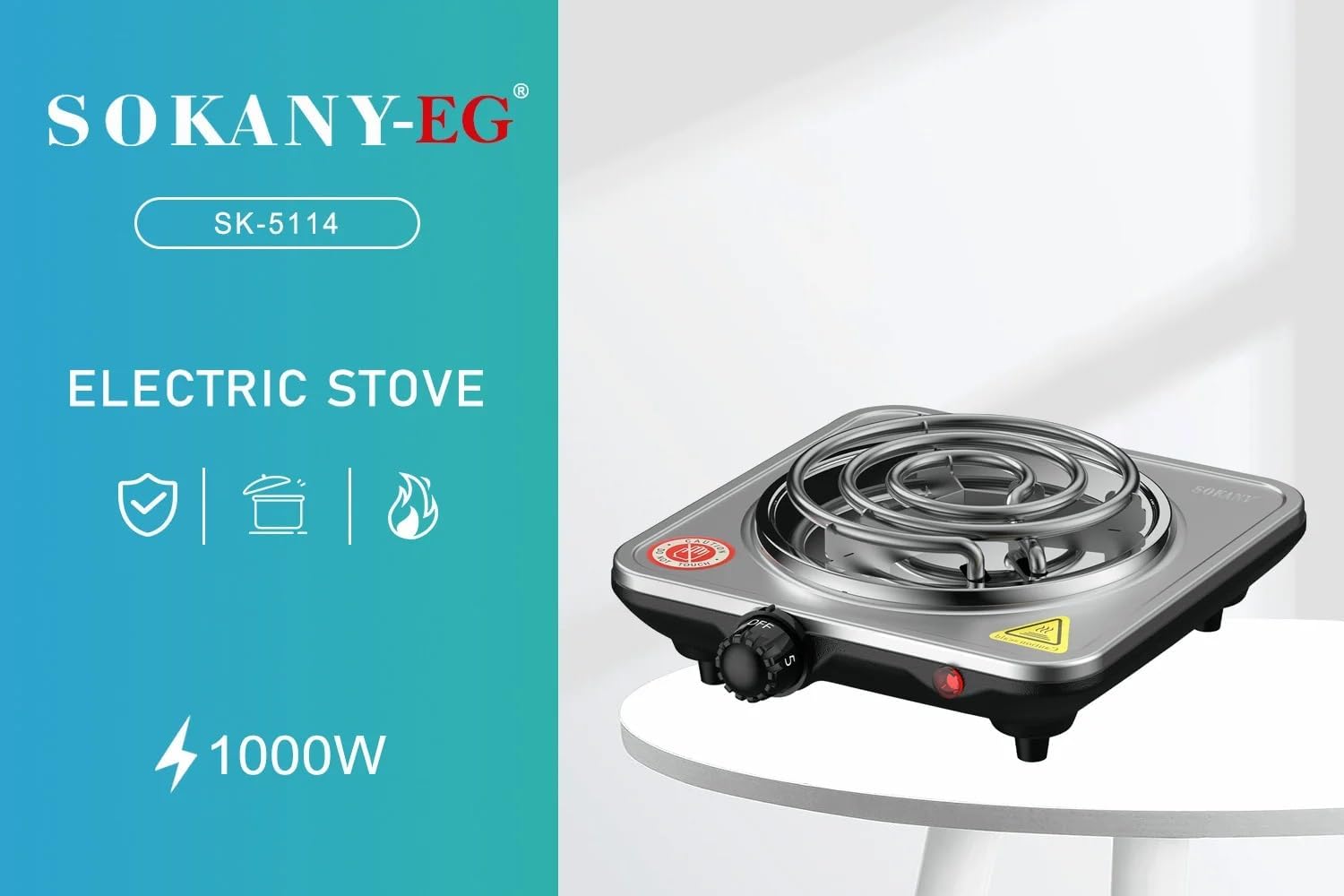 FOGÃO ELECTRICO DE 1 BOCA Aquecedor de Azulejos Sokany SK-5114 1000 Watt