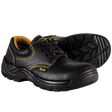 Sapato Preto Kamet S1P Flux com sola antiderrapante, absorvente de energia no calcanhar, antiestática e resistente a óleos, com biqueira e palmilha de segurança em aço.