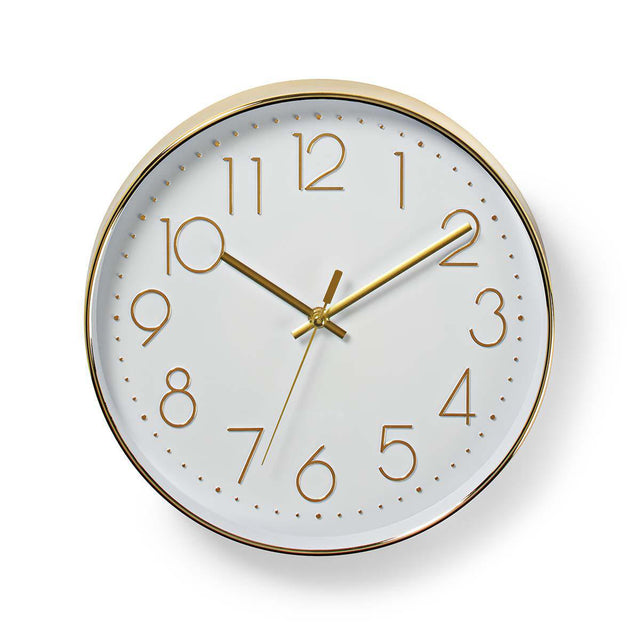 Combinando simplicidade, estilo e números grandes e fáceis de ler, este Relógio de Parede Circular Nedis compensa as características douradas contra um fundo branco.