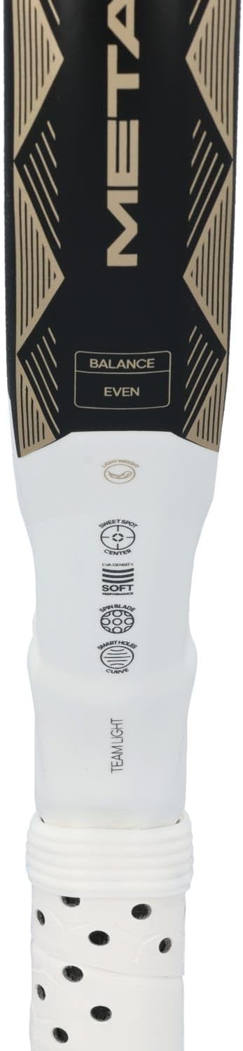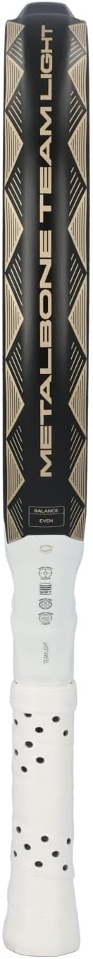 A Metalbone Team Light 3.4 é uma raquete leve projetada para trazer seu melhor desempenho. A potência máxima é garantida por tecnologias como a estrutura tubular Octogonal Structure, a alça Power Extra Grip e o design de baixo poliedro da estrutura e do núcleo. O equilíbrio e o controle vêm do uso de materiais premium, incluindo espuma EVA Soft Performance e fibra de vidro. Nível: Intermediário - Avançado Tipo de jogo: Controle Ponto ideal: Centro Superfície: Fibra de vidro Material Núcleo: EVA Soft Performance Foam Quadro: Fibra de Carbono Lâmina de rotação: Spin Blade Grit Furos inteligentes: Curvo Cor: Preto / Ouro / Branco Peso: 345-360gr Espessura: 38 mm Esporte: Padel Modelo: Metalbone Coleção: 2025 Potência estrutural: Low Poly Design Forma: Redondo.
