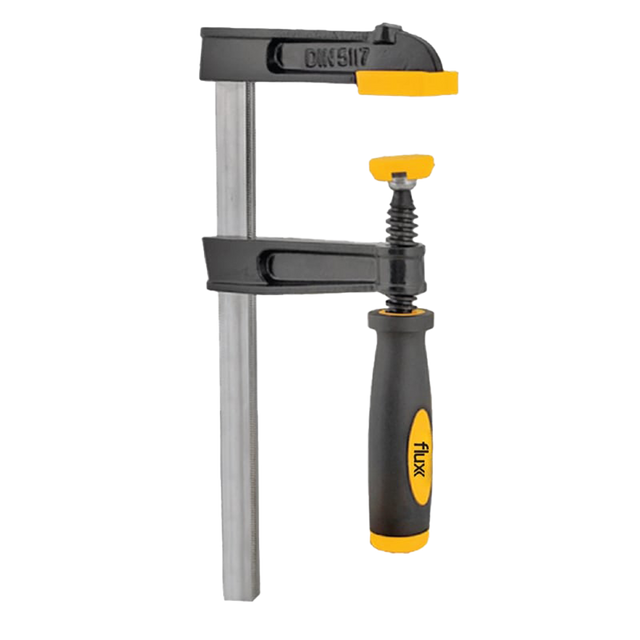 Grampo de Aperto Rápido Flux com abertura regulável por rosca, de forma a facilitar a operação.