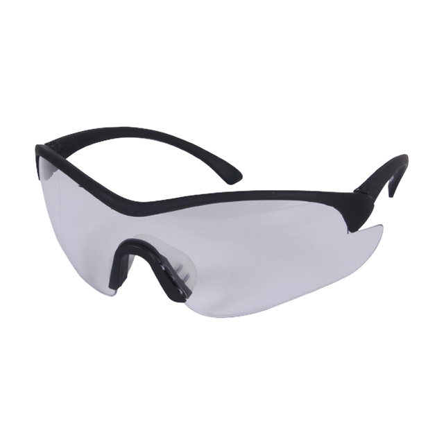 Óculos de proteção com visão ampla e lentes em policarbonato para proteção contra impactos e raios UV.
