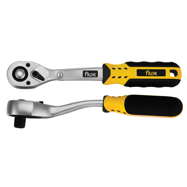 Chave de roquete reversível com punho ergonómico e 72 dentes.