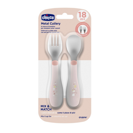 CHICCO CONJ. TALHERES INOX ROSA 18M+ (21
