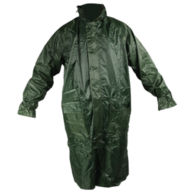 Capa de Chuva PVC/Poliester Flux à prova de água, com composição 70% Poliéster + 30% PVC.