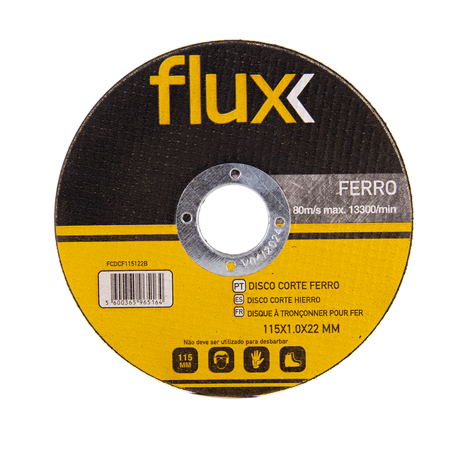 Disco corte de ferro Flux para utilização em rebarbadoras de qualquer potência.