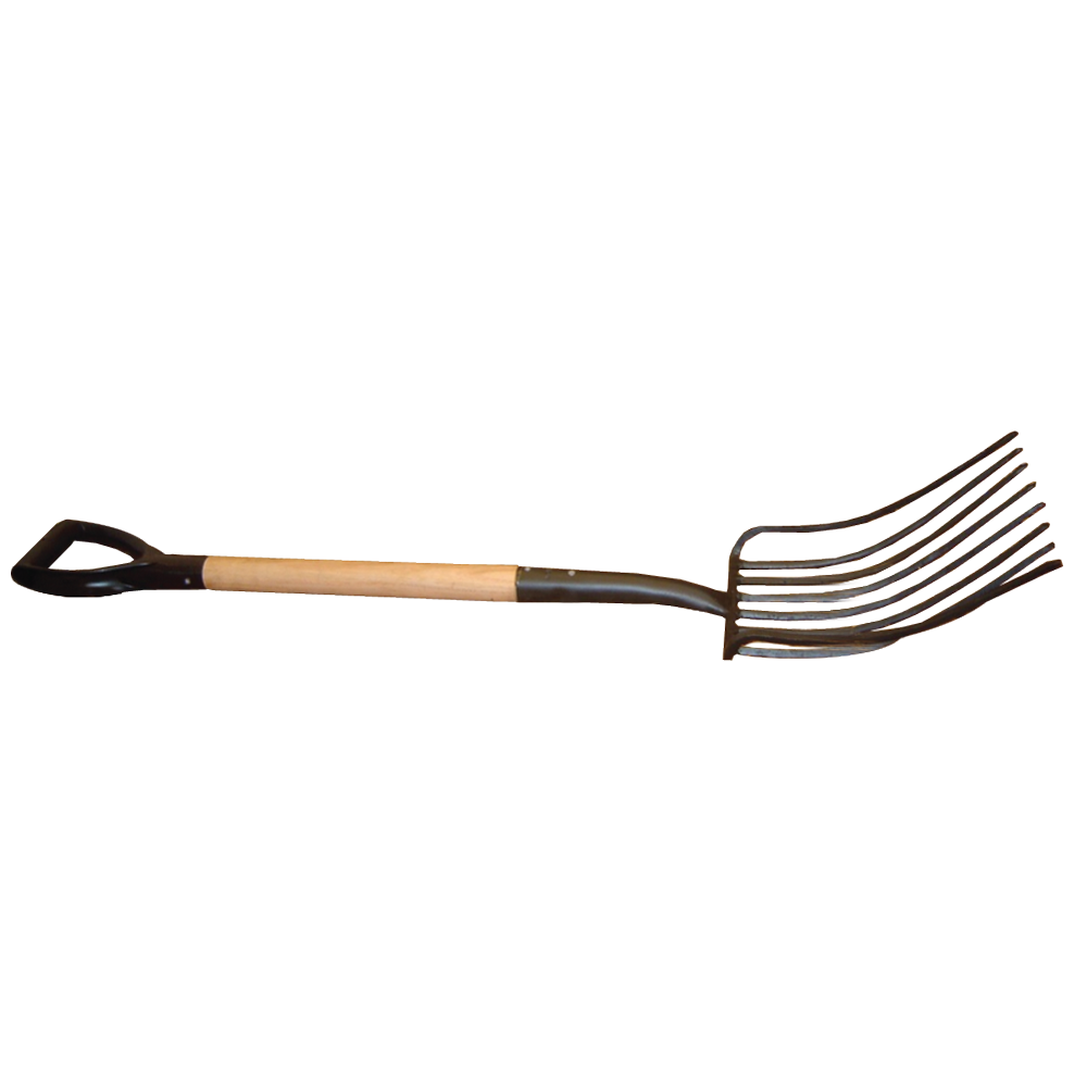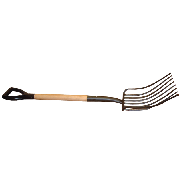 Forquim para cascalho com pega ergonómica, para facilitar o trabalho.