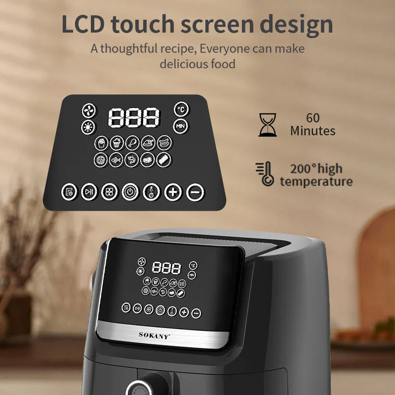 Fritadeira de ar SOKANY SK-10007 com temperatura ajustável e proteção contra superaquecimento