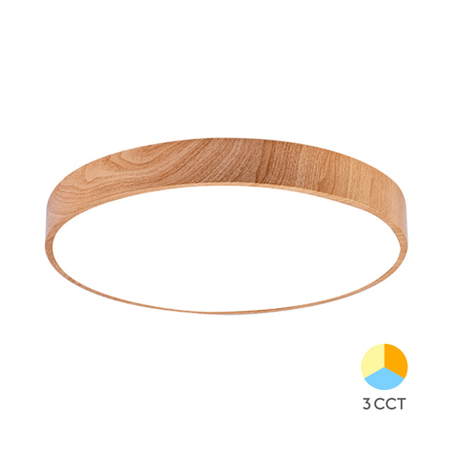 Luminária de Teto Braytron Blade Redonda 36W 3IN1 Madeira | Iluminação Regulável
