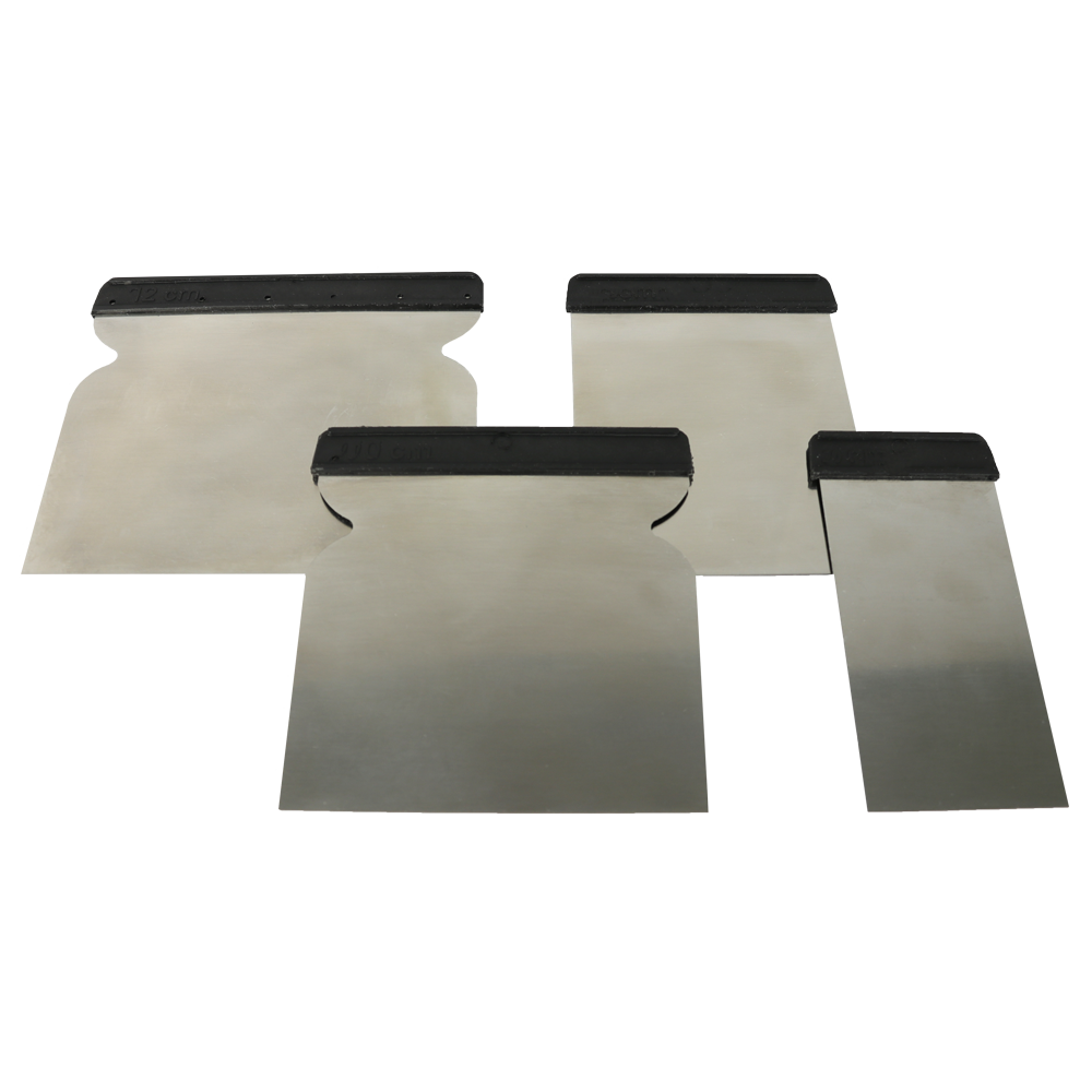 Conjunto de Betumadeiras Auto Flux em aço inoxidável flexível, ideal para betumar carroçarias de automóveis.