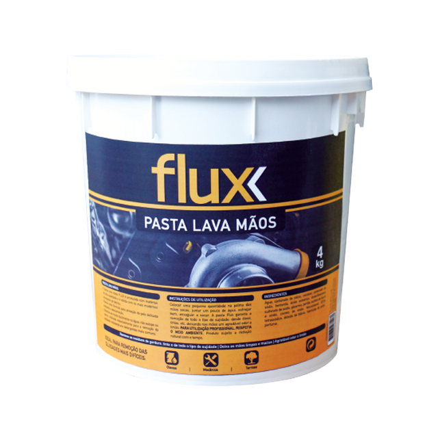 Pasta lava mãos 4Kg Flux ideal para a remoção da sujidade mais difícil, quer seja oleosa, mecânica ou outra.