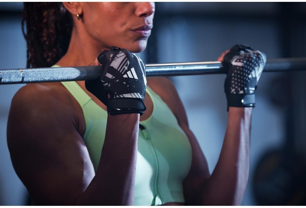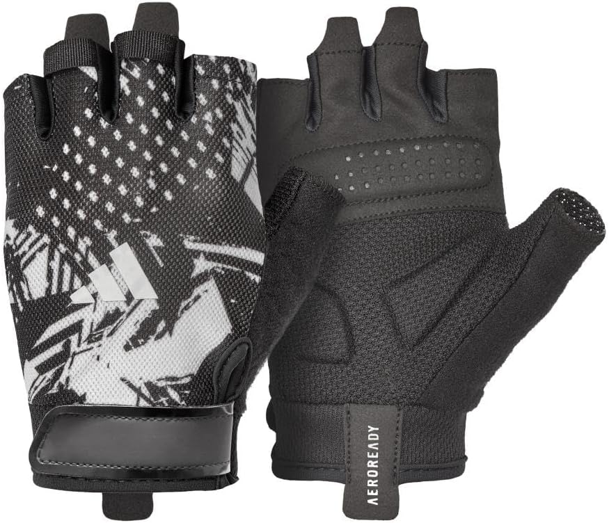- Material Aeroready absorve o suor para mantê-lo fresco e seco Disponível em tamanhos de X-Small a X-Large Forro interno de tecido confortável proporciona uma sensação amigável ao toque Projetado para proteger suas mãos enquanto melhora o desempenho Puxadores de dois dedos permitem uma remoção rápida e fácil Painéis laterais elásticos garantem um ajuste confortável Seções de camurça acolchoadas ergonomicamente fornecem proteção e aumentam a durabilidade