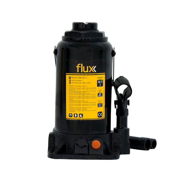 Macaco Hidráulico 16Ton Flux possui válvula de segurança para evitar elevação superior à sua capacidade.