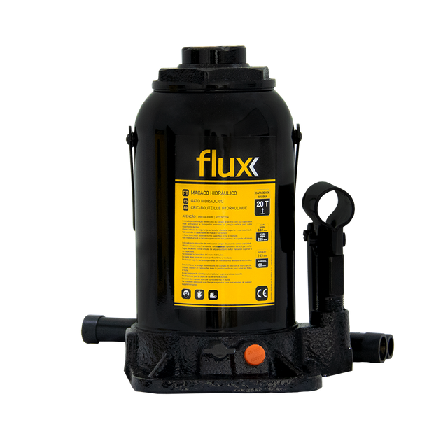 Macaco Hidráulico 20Ton Flux possui válvula de segurança para evitar elevação superior à sua capacidade.