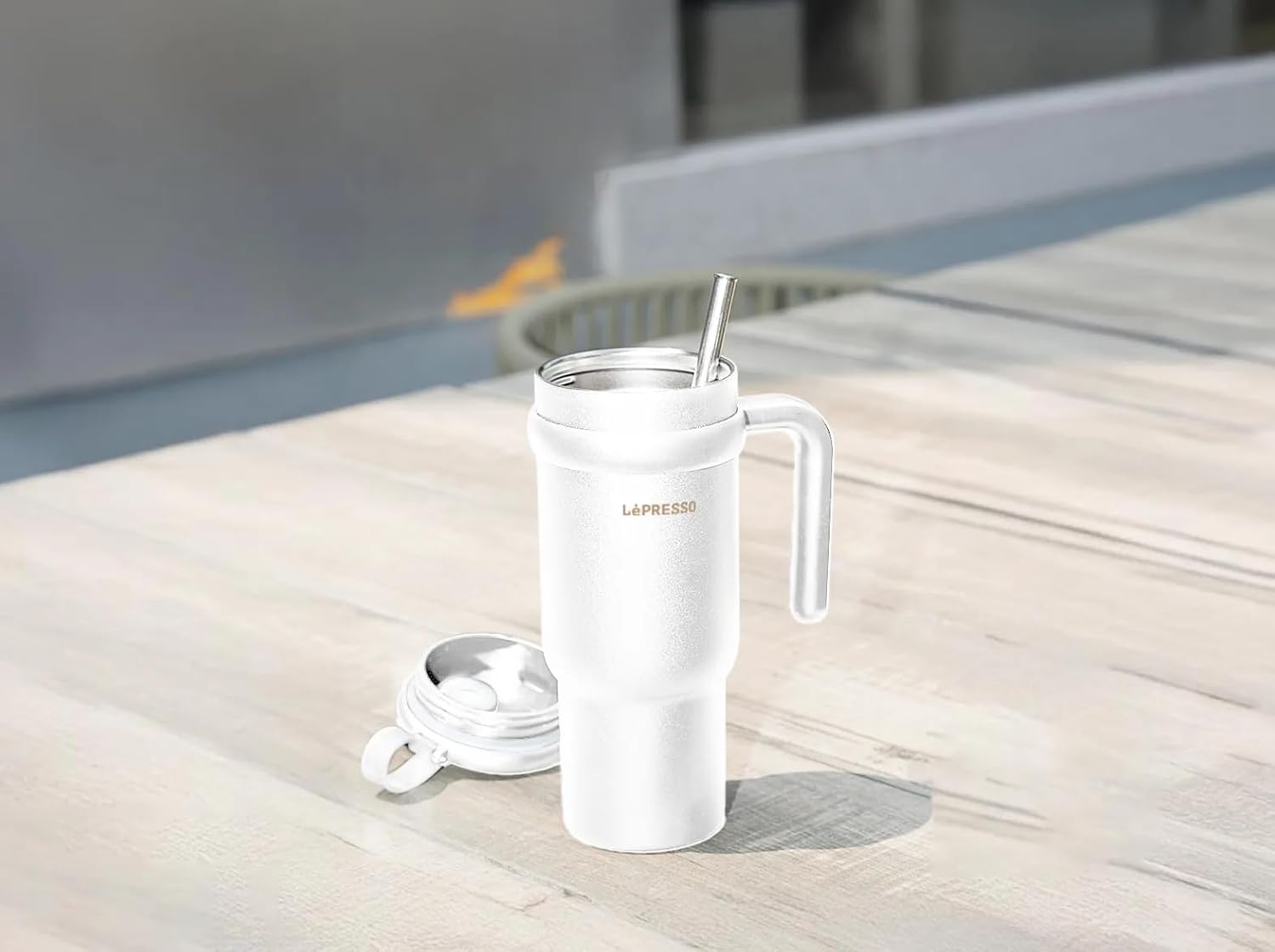 Caneca de Café LePresso com Canudo de Inox 900ml - Branco