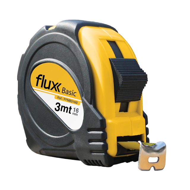 O seu revestimento na caixa com plástico absorve os choques, protegendo a Fita Métrica Flux aumentando, assim, a sua vida útil.