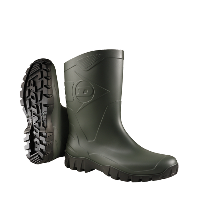O modelo Dee da Dunlop é uma bota leve de cano médio com um design arrojado produzida em PVC. Desenvolvida para se adaptar perfeitamente ao pé do utilizador, oferece conforto para uso diário, proteção à prova de água e resistência contra uma vasta variedade de produtos químicos (código de resistência a químicos 1).
