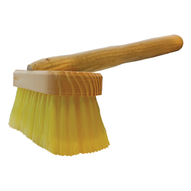 Pincel de Caiar Retangular em Nylon Flux, com cabo de madeira e cerdas em nylon, ideal para caiar ou pintar em ambientes de construção cívil.
