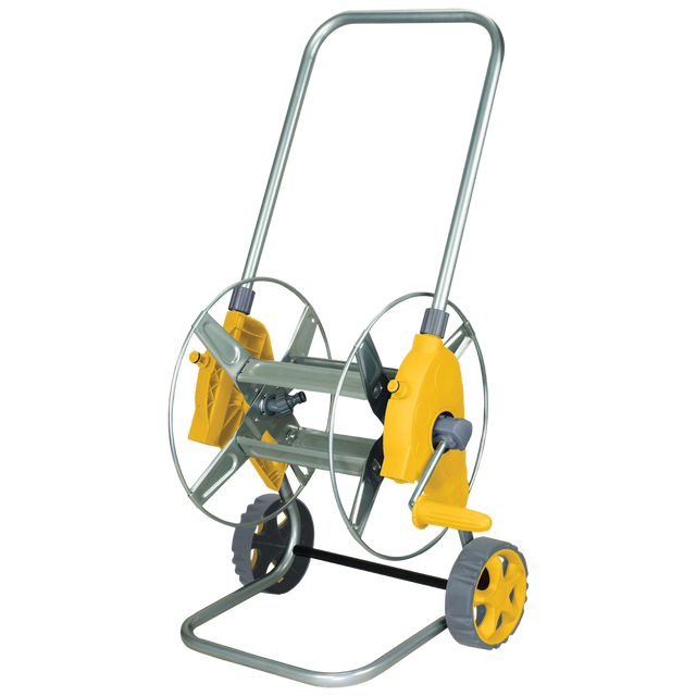 Tambor estável com manivela que facilita o enrolamento da mangueira.