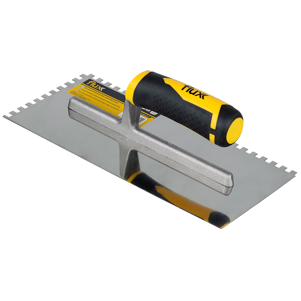 Talocha dentada que permite aplicar e distribuir uniformemente o material, evitando os desperdícios.
