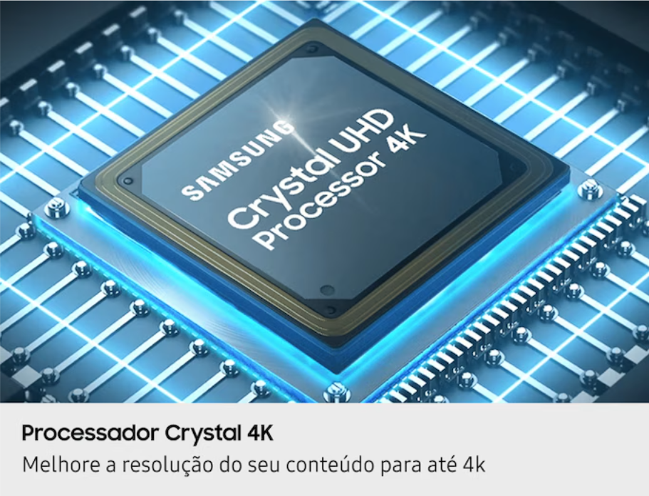 - Processador: Processador Crystal 4K, que aprimora o conteúdo para uma resolução próxima de 4K.