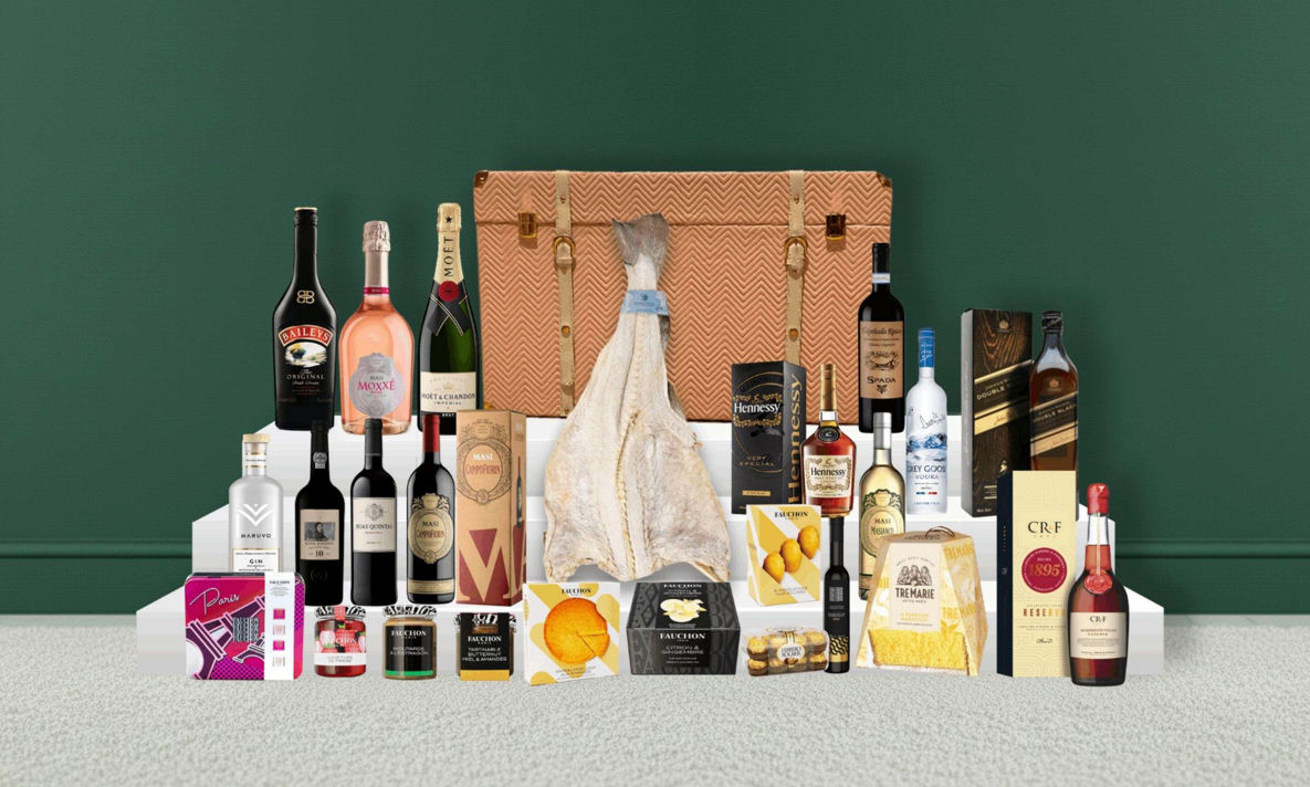 O Cabaz Prata reúne uma seleção premium de bebidas, chocolates e produtos gourmet, cuidadosamente combinados para oferecer uma experiência refinada e festiva neste Natal.