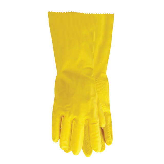 Luva Látex Ménage Amarela Flux para uso doméstico, em latéx natural sem pó.