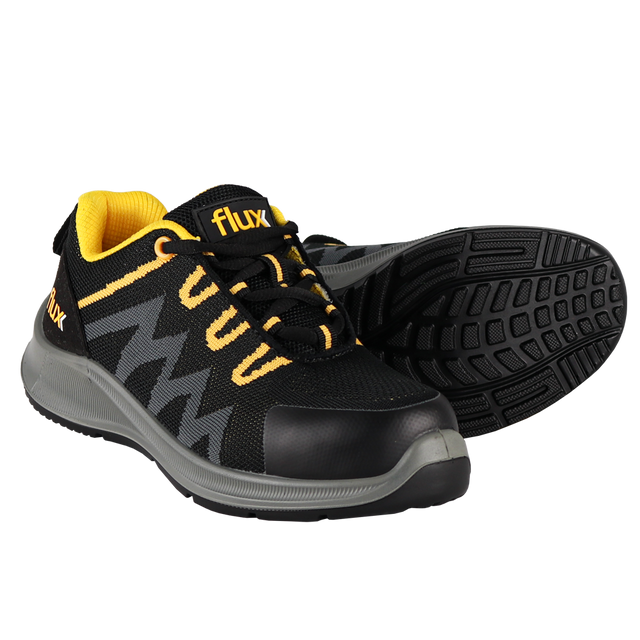 Sapato Sport Max K2 S1P Flux com sola antiderrapante, absorvente de energia no calcanhar, antiestática e resistente a óleos, com biqueira e palmilha de segurança em aço.
