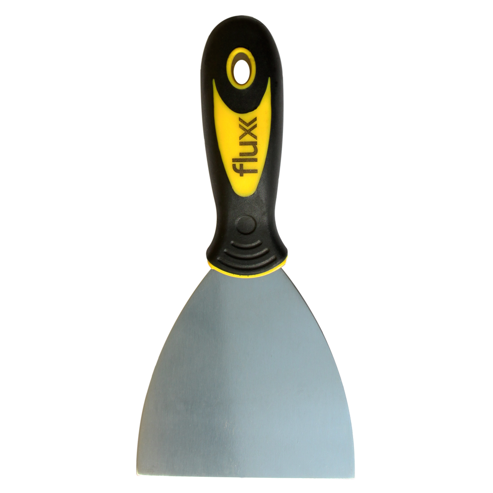 Espátula Flux em Inox com cabo em bimatéria ideal para estucar, para reboque, acabamento de juntas e betumagem.