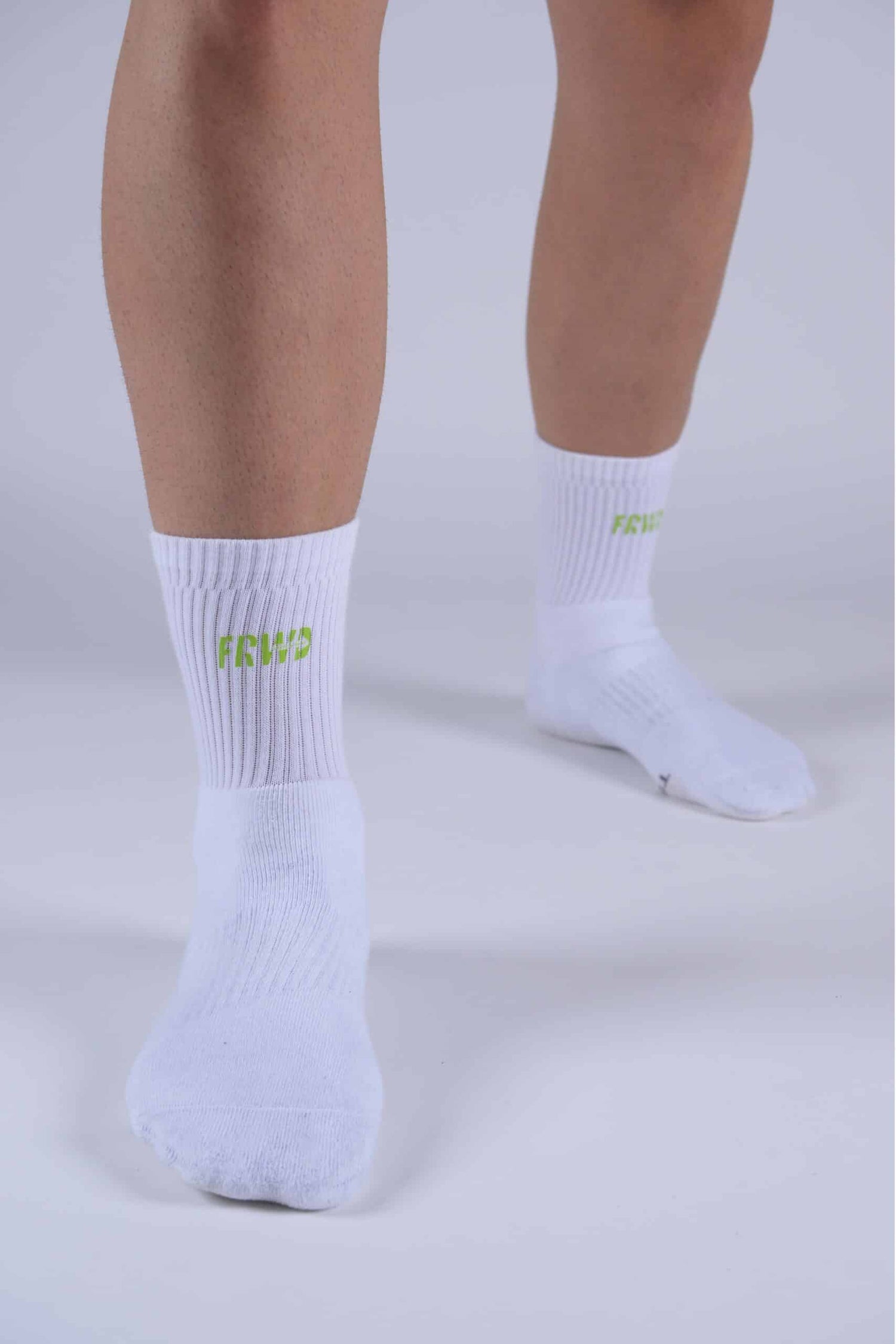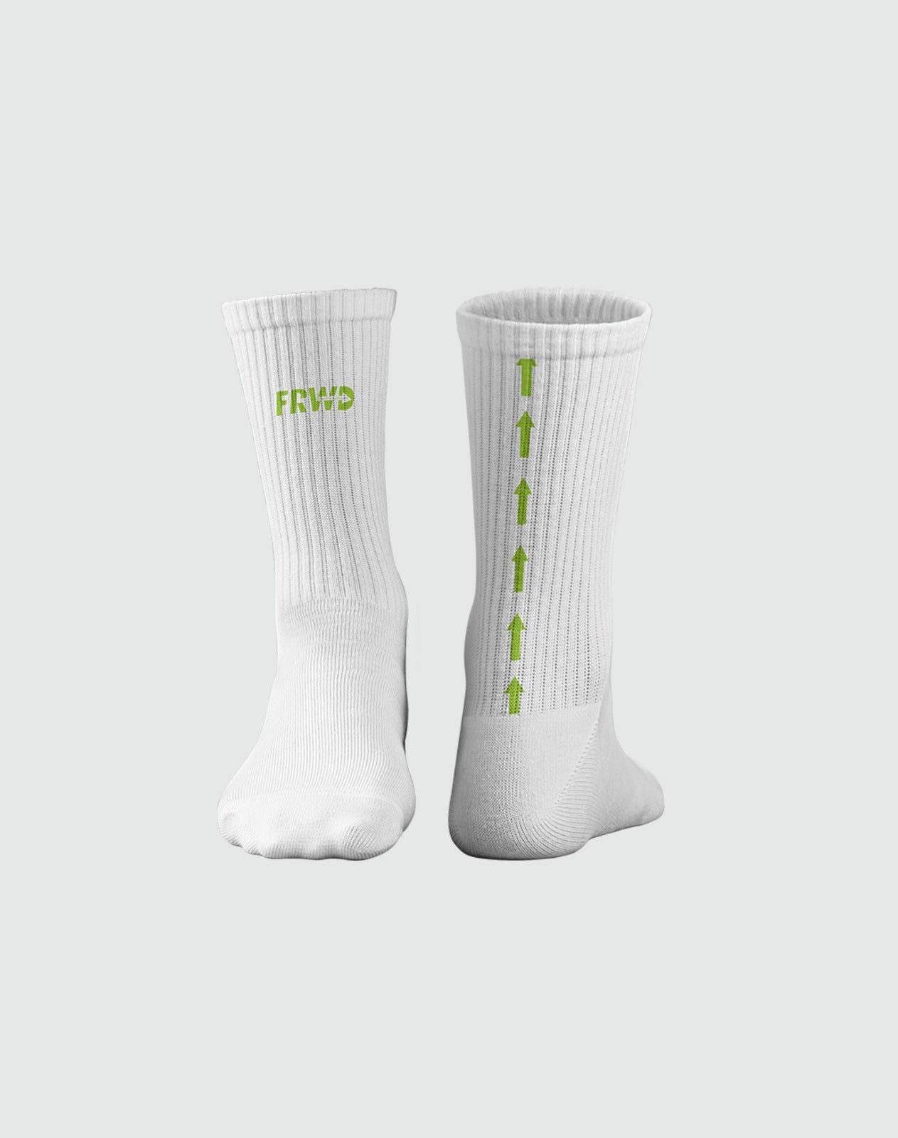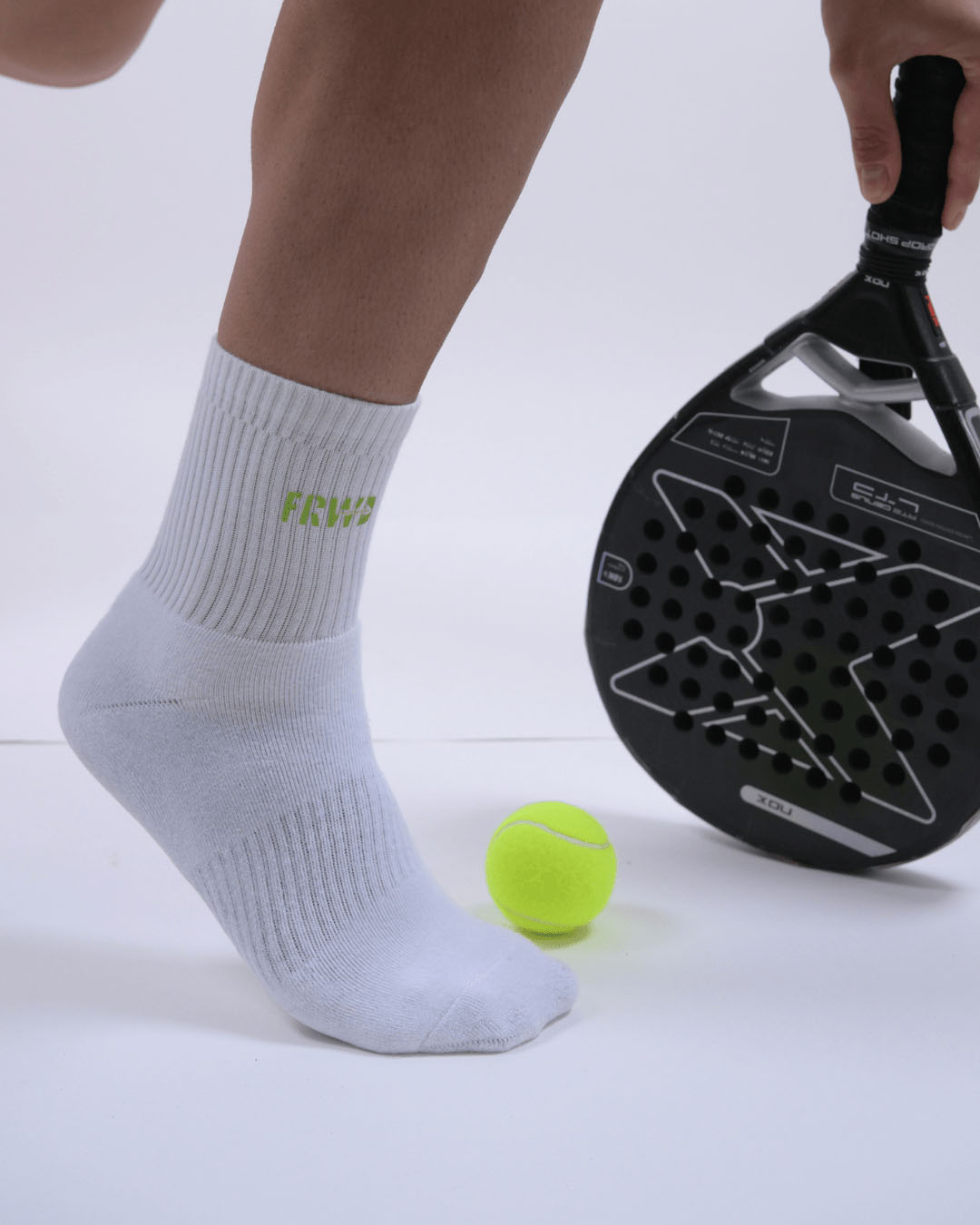 As Meias FRWD Branca e Verde são feitas para desempenho em padel — oferecendo respirabilidade, suporte do arco e conforto que mantêm o foco do começo ao fim.