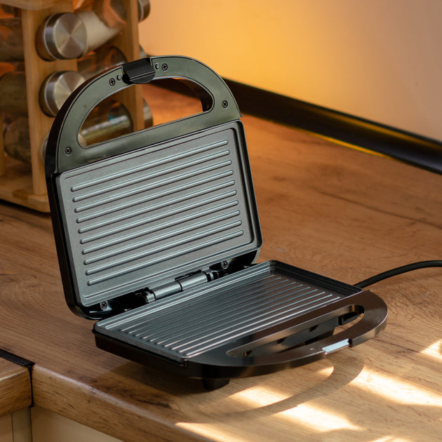 Ideal para sanduíches, legumes, frango, peixe e outros alimentos. Limpeza fácil - basta limpar com um pano úmido. Seguro e estável - cabo e pernas isolados termicamente com revestimento antiderrapante.