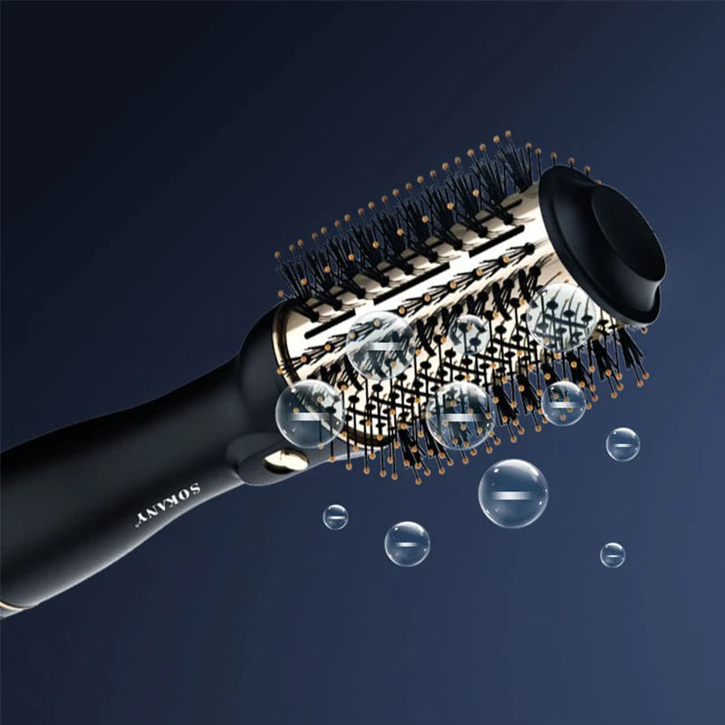 Este pente de ar quente com 1200W de alta potência e volume de super ar. Essa poderosa combinação oferece um vento forte que garante melhor cuidados com os cabelos, secando o cabelo rapidamente, minimizando os danos causados pelo calor. O motor de alta potência fornece amplo fluxo de ar para estilizar seu cabelo com eficiência, adicionando volume e brilho sem comprometer a saúde do seu cabelo.