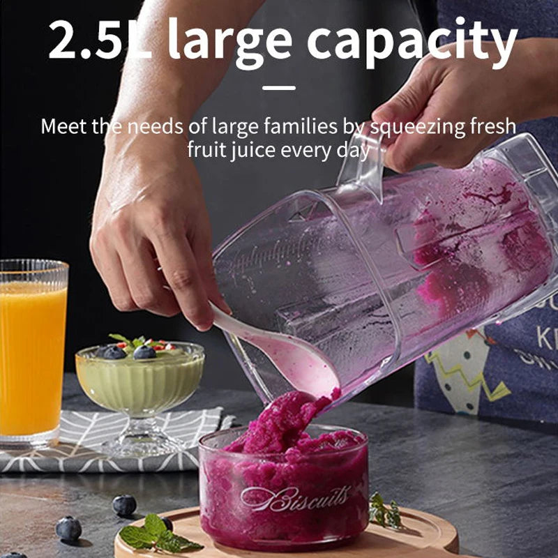 O liquidificador apresenta uma generosa capacidade de 2,5L, tornando -o perfeito para atender às necessidades de famílias numerosas. Com seu desempenho poderoso, ele pode facilmente espremer suco de frutas frescas todos os dias, garantindo que todos em sua casa possam desfrutar de bebidas saudáveis e deliciosas. Esteja você preparando o café da manhã para uma multidão ou hospedando uma reunião de família, este aparelho versátil será sua ferramenta preferida para criar bebidas nutritivas com facilidade.