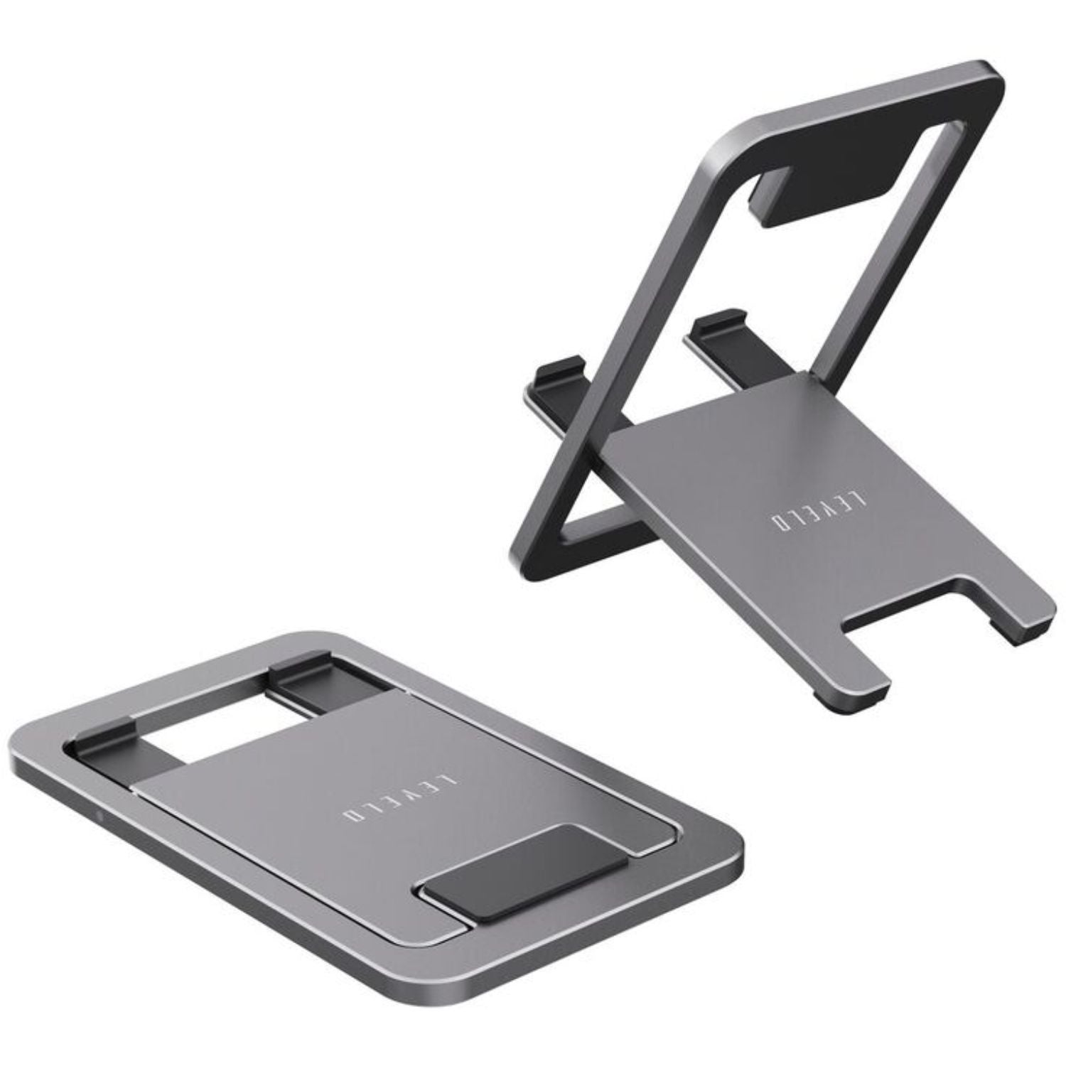 Suporte de Telefone Dobrável de Alumínio e Silicone Levelo Airlift, Design Fino e Leve, Material Forte e Durável - Cinza